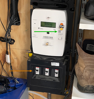 Geen automaten zichtbaar? Kijk dan op de meter. Groene pijl: 230V.
